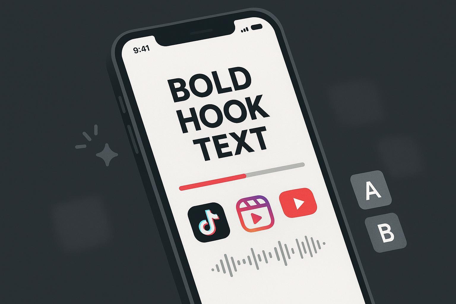 Create 2–3 variants per format. Change only one variable each time (hook text, first shot, or audio choice) to keep tests clean. Validate legibility: bold text in safe zones, captions accurate, sound-off clarity.