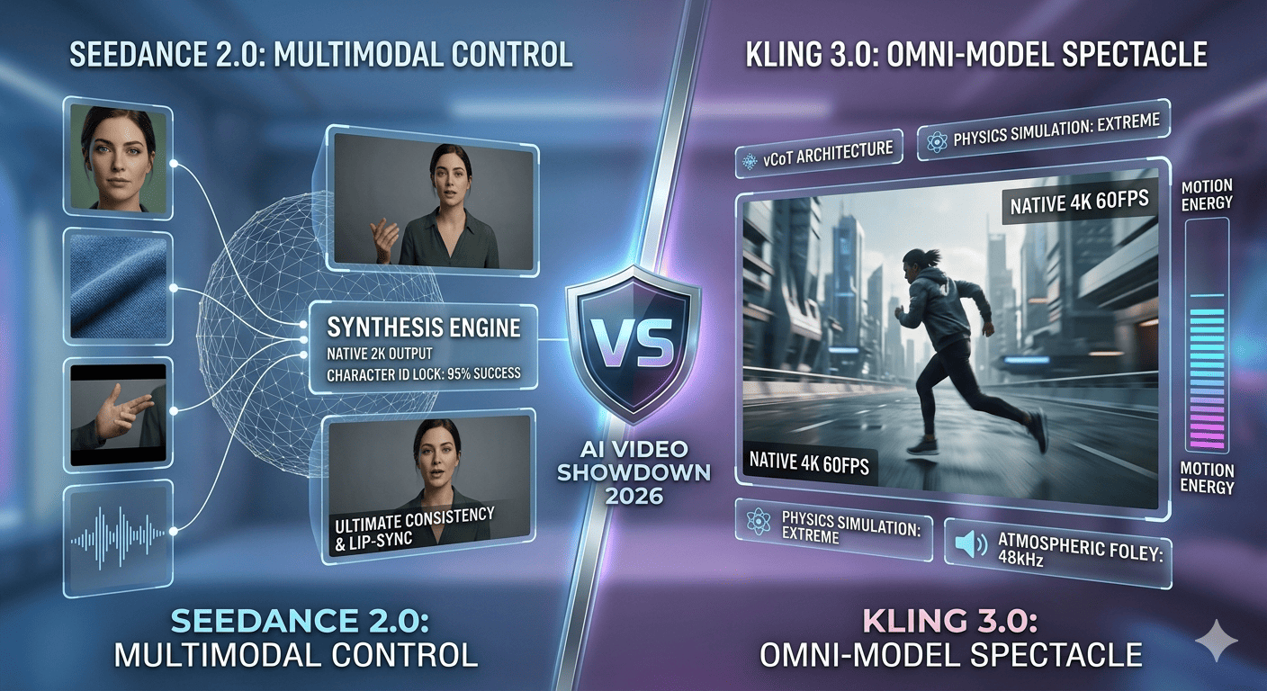 The comparison between Seedance 2 vs Kling represents a fundamental choice between two distinct philosophies in generative AI: Director-level control versus Cinematic spectacle. Seedance 2.0, developed by ByteDance, is a multimodal control engine designed for creators who require surgical precision through its unique 12-file reference system and character-locking capabilities. Conversely, Kling 3.0 is an "All-in-One" motion master that has set a new industry benchmark with native 4K output at 60fps and superior real-world physics simulation. While Seedance 2 dominates in cross-shot narrative consistency and complex action replication, Kling 3.0 leads in raw visual fidelity and ease of use for high-impact social media hooks.